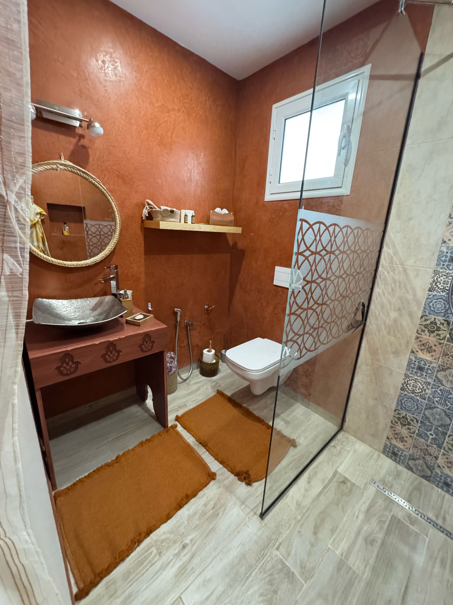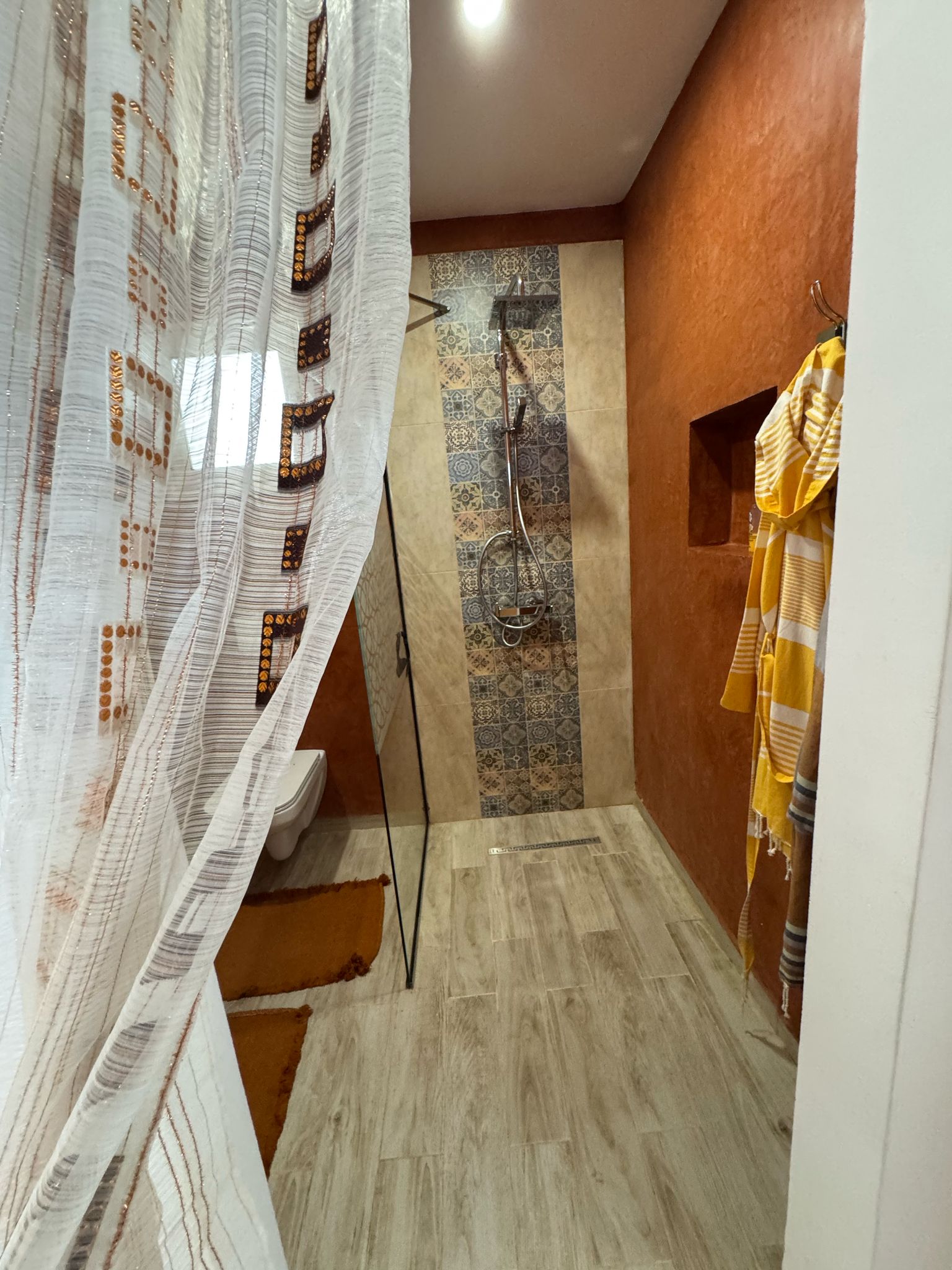 Pour votre confort, la suite Sahara est équipée d'une télévision pour vos moments de détente, d'une connexion Wi-Fi pour rester connecté avec le monde, d'une salle de bain privative pour votre intimité, et d'une climatisation pour une température idéale en toutes saisons.